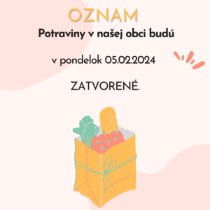 Potraviny budú v pondelok 05.02.2024 ZATVORENÉ