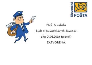 POŠTA ĽUBEĽA bude 01.03.2024 ZATVORENÁ