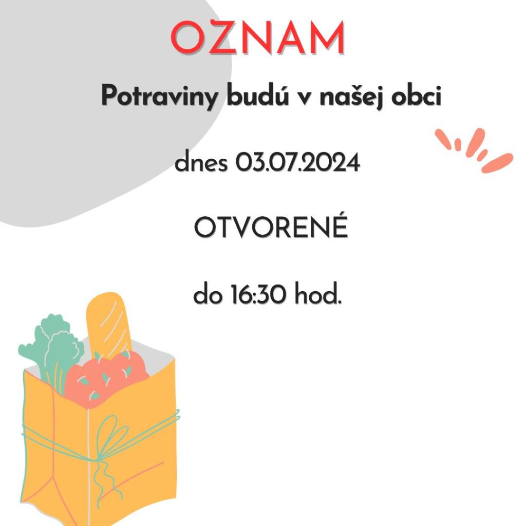Potraviny budú dnes 3.7.2024 OTVORENÉ do 16:30 hod.