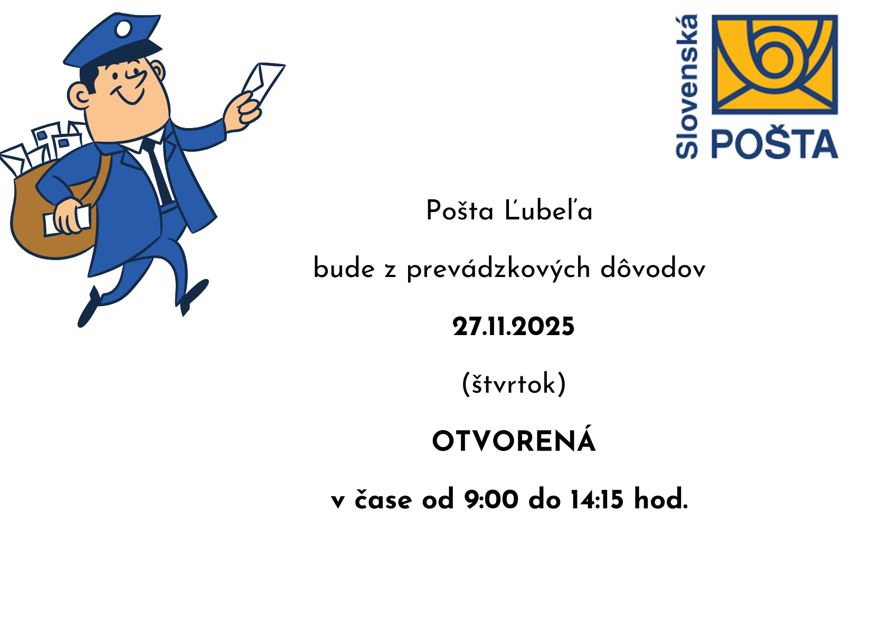 Oznam - Pošta Ľubeľa