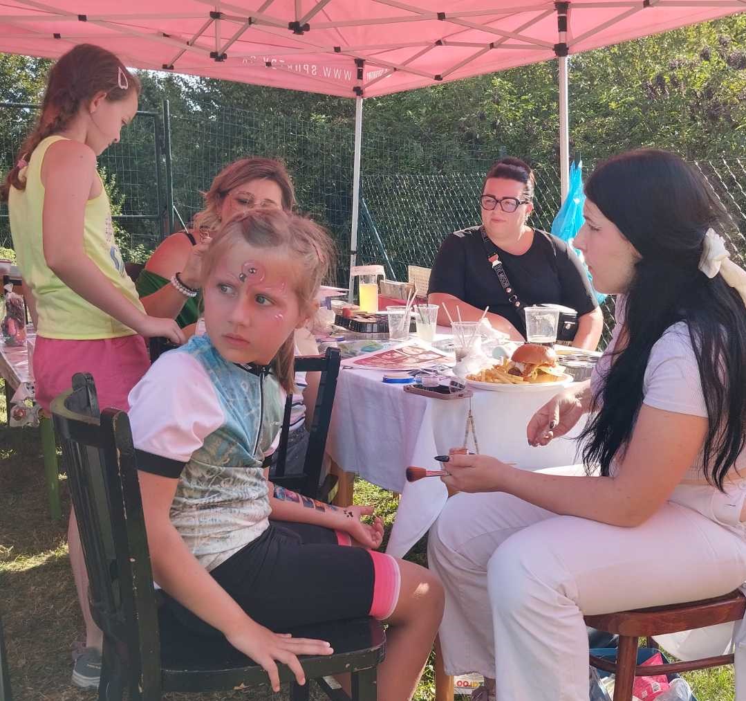 Pre deti počas dňa bol pripravený skákací hrad, súťaže ale i maľovanie na tvár. Ďakujeme pani riaditeľke Mirke Roób, Majke Chovancovej, Monike Chenells, Sárke Chovancovej a Saške Bobulovej, Anetke Skokanovej a Karinke Brišovej, že sa venovali našim najmenším. Deti si mohli v tvorivých dielňach vytvoriť náramok a zahrať si aj rôzne logické hry.